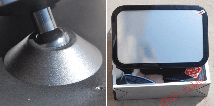 这样安装镜面够大,视野够宽广,但是浪费,镜子没有放大功能的,在大的镜子,远距离成像也跟小镜子一样大小的,看上图,宝宝成像只占镜子的一个小角落,而且开车不方便,遮挡视线,也不好受哇,所以掌柜不推荐。如果宝宝大了,安全座椅已经在正向安装了,建议亲们选择另外一款小后视镜,小巧够用,安全不挡视线,吸盘和夹子2种安装方式,是专为安全座椅正向安装设计的,正向安装不用中转反光,直接从小后视镜就能看到宝宝全身,并且安全座椅安装在驾驶后和副驾驶后都可以看到哦。大小2款一起拍,省事省心哦!