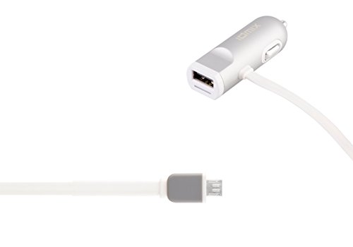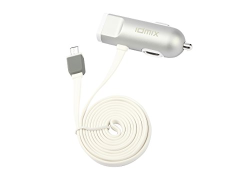 Idmix® 2.4Amp Universal Mini Mobile Power Supply Car Charger with 3ft Flat Cable Micro USB Charge Sync CableIdmix® DM-C02 mini 2.4Amp Car Charger with Smart Blue LED Indicator Light for iPhone, iPad Air 2, Samsung Galaxy S6 / S6 Edge, Nexus, HTC M9, Motor