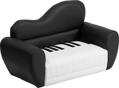 Kids Piano Chair in Black and White Vinyl Upholstery - Children Piano Chair