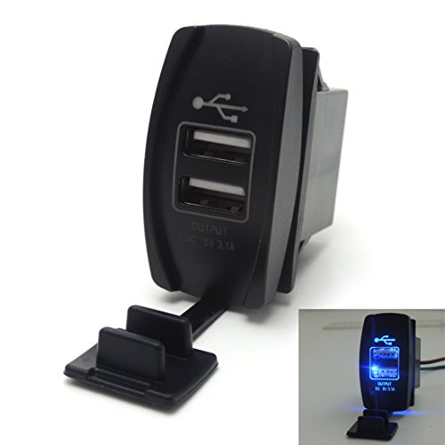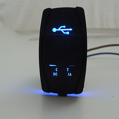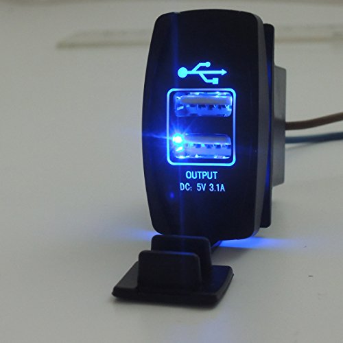 12V Blue LED Dual USB Charger Backlit Rocker Fast Charging Switch for Polaris RZR Ranger 900 1000