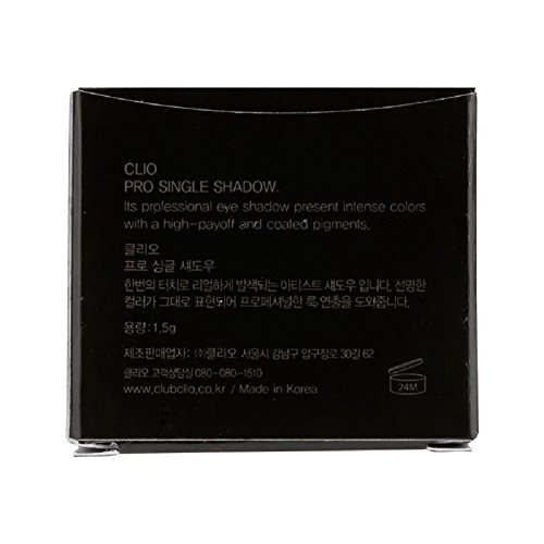 -. Binding : Misc. -. Brand : Clio -. Feature : Enjoy free shipping on orders over $70.00 / This is Clubclio's direct management shop's Korean head office. / Volume : 0.05 Ounce / Period after opening : 24 months / Details : Dramatic professional results in just a single sweep / Highly Adhesive / Latest on-trend colors / Country of Origin : South Korea / The color displayed may vary depending on your screen. -. Label : CLIO -. Manufacturer : CLIO -. MPN : P00000GF -. PartNumber : P00000GF -. ProductGroup : Beauty -. ProductTypeName : BEAUTY -. Publisher : CLIO -. Studio : CLIO -. Title : CLIO Pro Single Shadow
