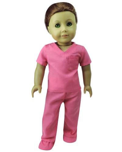 Fuchsia Scrub Cap & Shoe Covers. White Face Mask fits American Girl Dolls, Madame Alexander, Sophia's Dolls & More!