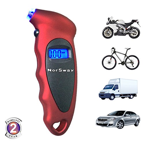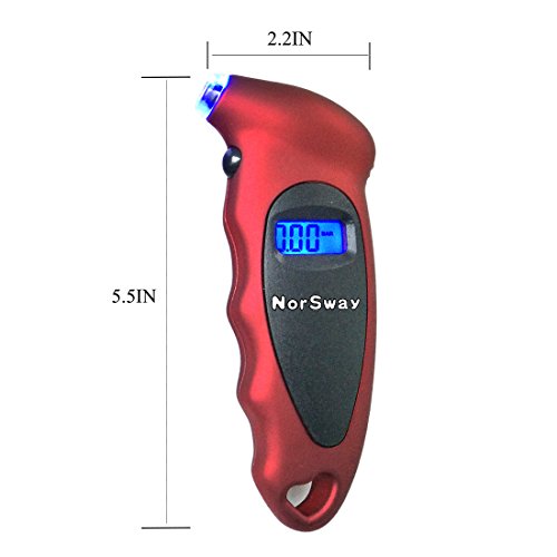 Pressure range: 0-100 PSI, Resolution : 0.5 PSI/0.05 BAR , Precision: ≤+/-1.5 psi , Dimension: 5.5 x 2.2 x 1.05 inch. Passenger car tire pressure standard is 2.3-2.5 bar.The maximum not more than 3.0 bar, the minimum not less than 2.1 bar. Lorry car tire pressure standard is 5~7 kg/cm². Tire pressure is too low, will cause the tire sidewall to directly wear the ground, too fast, or too long driving, result in sidewall rupture, and even puncture
