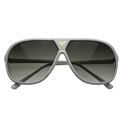 zeroUV - Large Retro Stunner Plastic Aviator Sunglasses w/Mustang Horse Logo