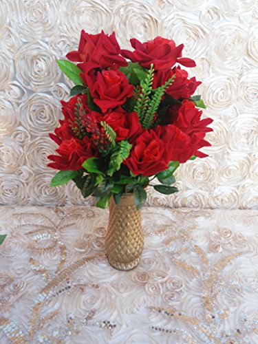 Mezly 8 red velvet roses with 6 lily grass for decoraction home or cementery