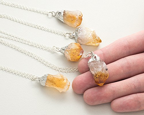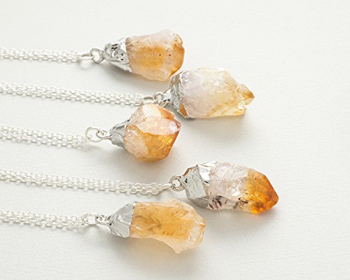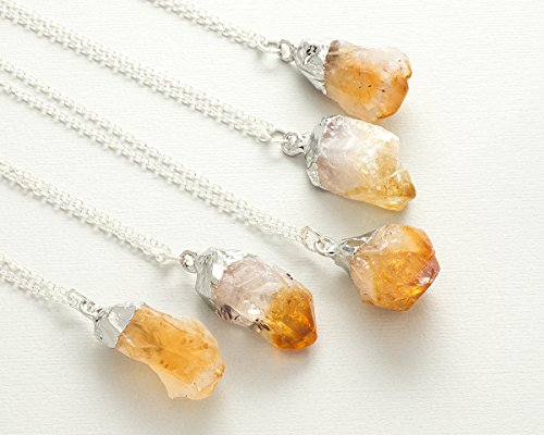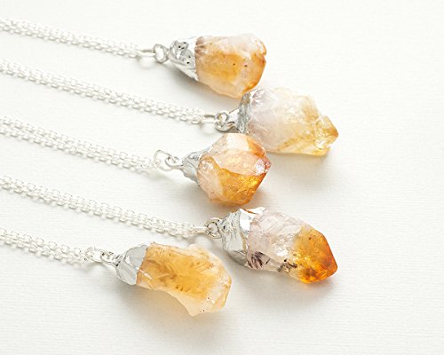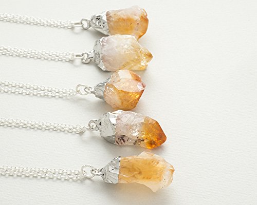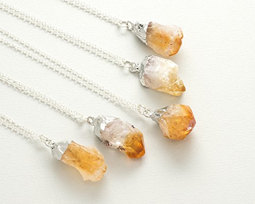 -. Title : Raw citrine crystal gemstone silver pendant necklace