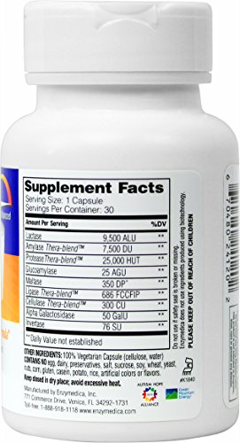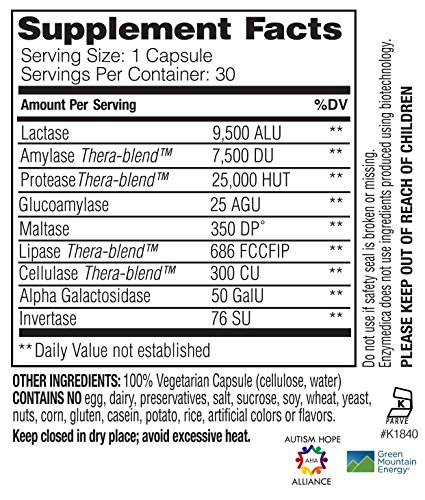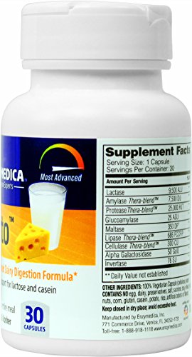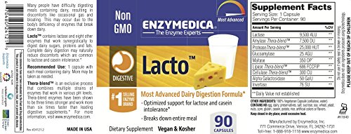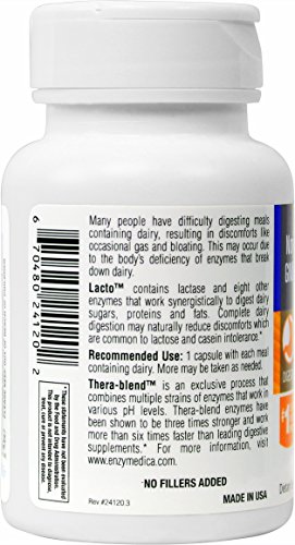 -. Binding : Health and Beauty -. Brand : Enzymedica -. Color : Parent -. Feature : For those that have difficulty digesting foods that contain lactose and dairy protein / Allows for lactose to be more readily digestible and absorbed / Take with meals that contain lactose / It is estimated that between 30 and 50 million Americans are lactose intolerant / Contains the highest amount of lactase plus eight additional enzymes -. IsAdultProduct : 0 -. Label : Enzymedica -. Manufacturer : Enzymedica -. PackageQuantity : 1 -. ProductGroup : Beauty -. ProductTypeName : HEALTH_PERSONAL_CARE -. Publisher : Enzymedica -. Studio : Enzymedica -. Title : Enzymedica - Lacto