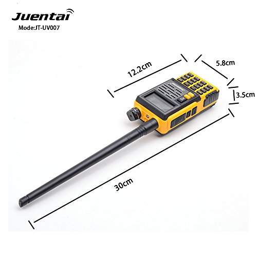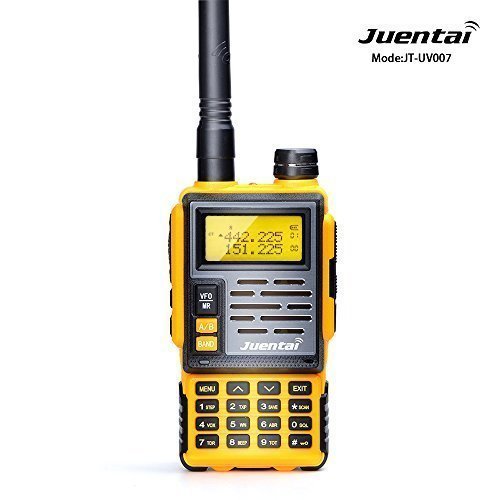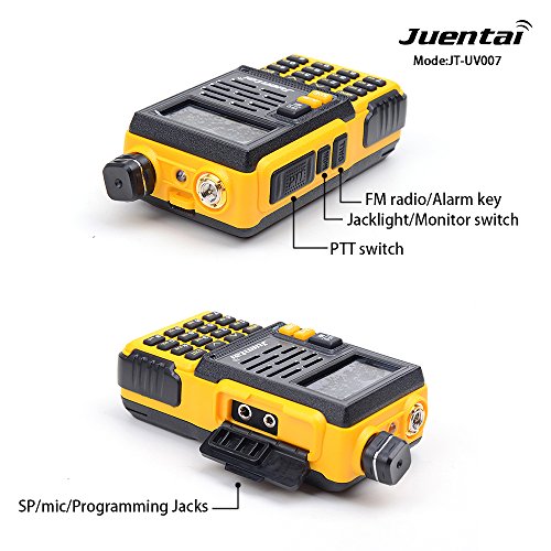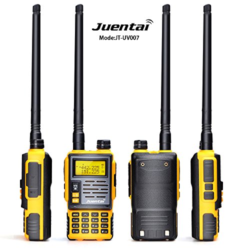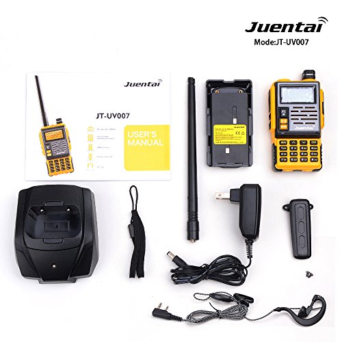 -. Binding : Electronics -. Brand : Juentai -. Color : Yellow -. EAN : 0751369405226 -. Feature : 1.The JUENTAI Advantage: 2015 NEWEST dual band amateur radio,maximum output power can reach 7W of frequency range 137-174Mhz & UHF 400-480Mhz / 2.Built-in Various Function: FM radio,Auto Back light,DTMF,1750Hz,SFT-D(In General,It's used for Repeater),Alarm ,Flashlight,Cable Clone,CTCSS/DCS,Remote stun/kill etc. / 3.Three Screen Color for Choosing: Yellow,green and red,creating exciting visual effects and interfaces exquisite clarity with LED definition display while you are using it. / 4.High capacity Li-Ion battery 2200mAh and Battery charger included as a standard supplied accessory of audio speaker power 1W and louder & clear sound. -. Label : Juntai Electronics Co., Ltd -. Manufacturer : Juntai Electronics Co., Ltd -. Model : JT-UV007 -. PackageQuantity : 1 -. ProductGroup : Car Audio or Theater -. ProductTypeName : TWO_WAY_RADIO -. Publisher : Juntai Electronics Co., Ltd -. Studio : Juntai Electronics Co., Ltd -. Title : JUENTAI JT-UV007 Dual-Band Ham Two-Way Radio UHF 400-480Mhz VHF 137-174Mhz Fm Transceiver Height Power:7w FM Radio 65-105MHz Amateur Radio For DTMF CTCSS DCS FM (Yellow) -. UPC : 751369405226