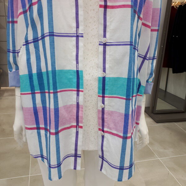 면100% 블라우스예요 여름자켓으로 입으시기 좋으세요 66사이즈 총장 77cm입니다