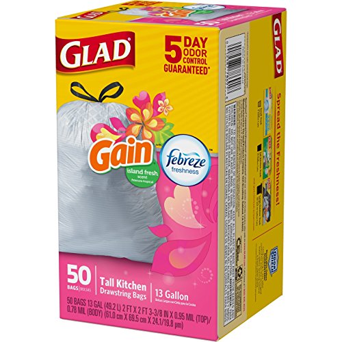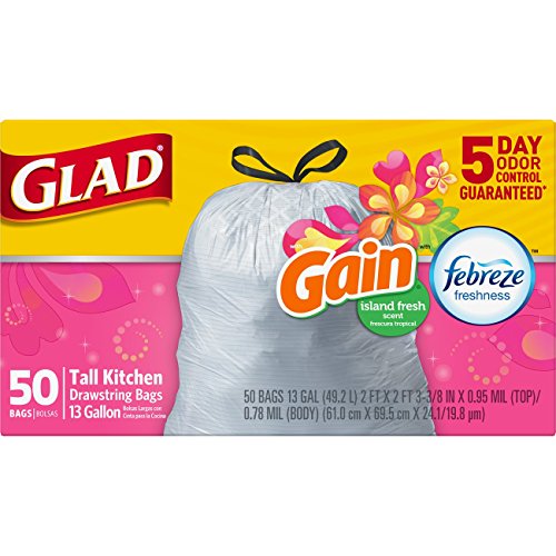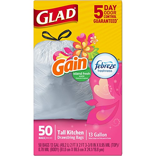Glad OdorShield Tall Kitchen Drawstring Trash Bags - Febreze Island Fresh - 13 Gallon - 50 Count