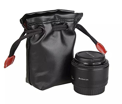 CEARI Small Leather Lens Pouch Bag for Canon Nikon Pentax Sony Fujifilm Sigma DSLR Camera Lens