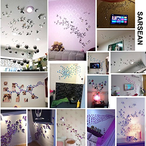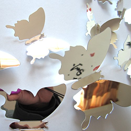 Sarsean 24PCS Silver Mirror Butterfly Wall Stickers Decals Art Home Decor