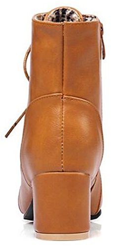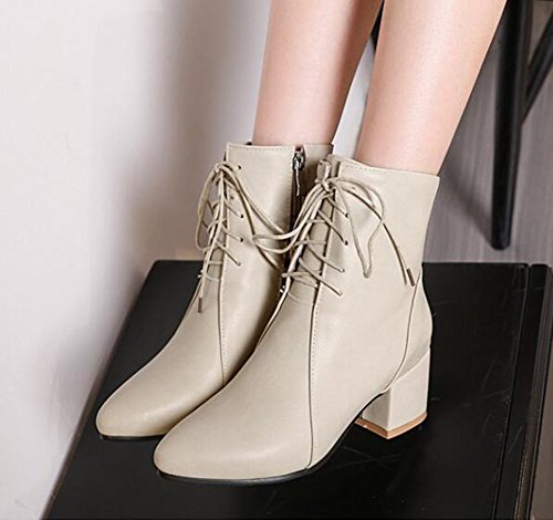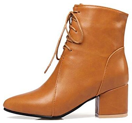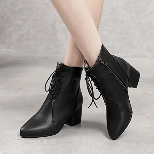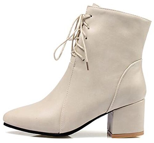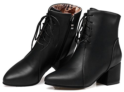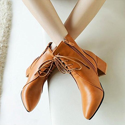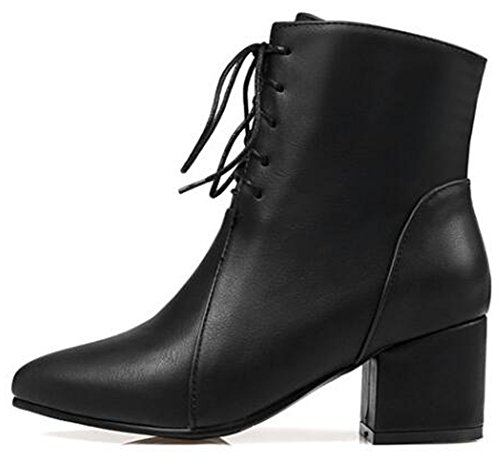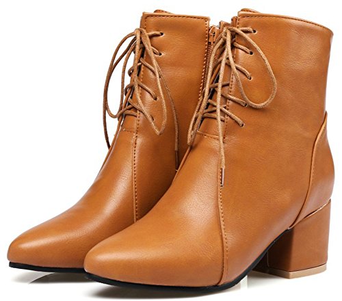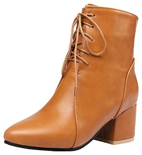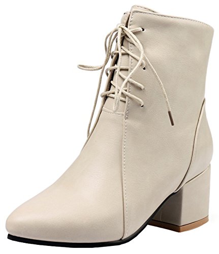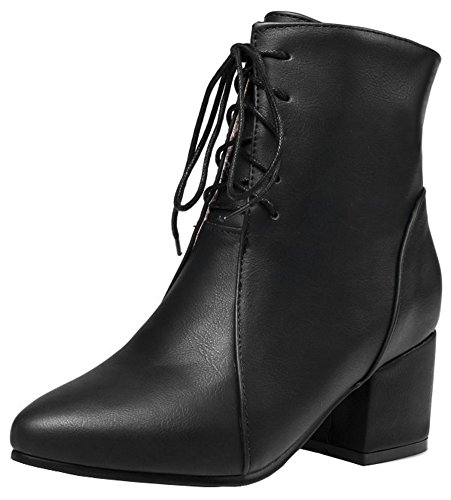 (Mofri)/Women's/Boots/DIRECT FROM USA/Mofri Women's Trendy Block Medium Heel Lace up Ankle Booties Pointed Toe Side Zipper Short Boots