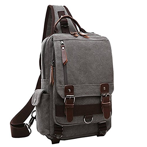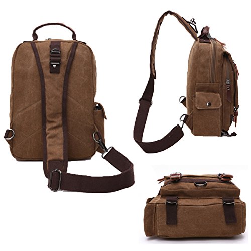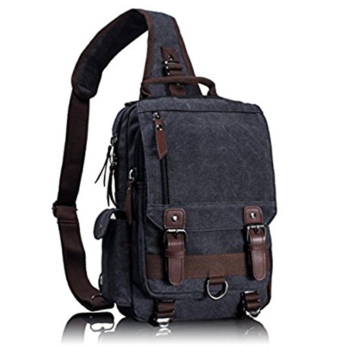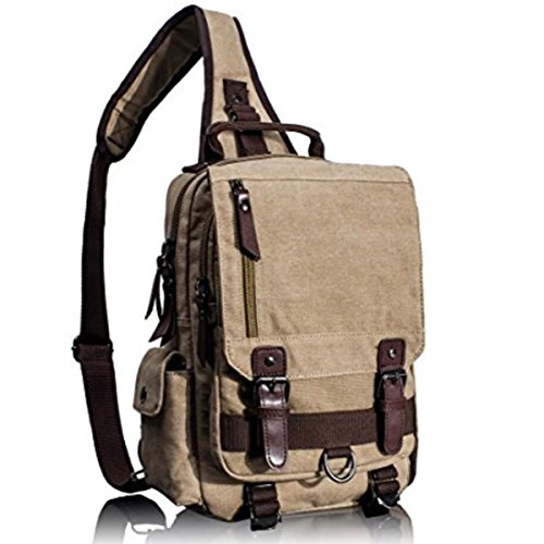 -. Title : Canvas Leather Crossbody Messenger Bag One Strap Sling Travel Hiking Chest Bag One Shoulder Travel Rucksack
