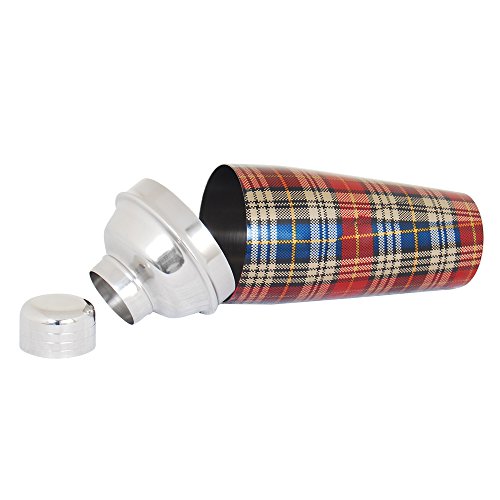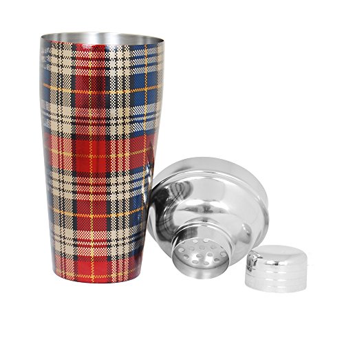 -. Title : Kosma Christmas Gift Stainless Steel Cocktail Shaker – Mocktail Shaker in Blue Red Chequered Print Design, 750 ml | Barware Tool
