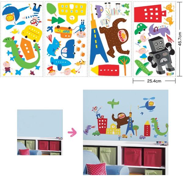 ビルや鉄塔などの街並を作って、車や恐竜・モンスター、TVクルーなどを楽しく配置しましょう。まとめて貼ってもバラバラに使っても楽しいセットです。★商品名★ラズーボーイズ★商品番号★LAZ0003SCS★シートサイズ★[25.4cm × 45.7cm]×4枚★内容★40ピース/1パック