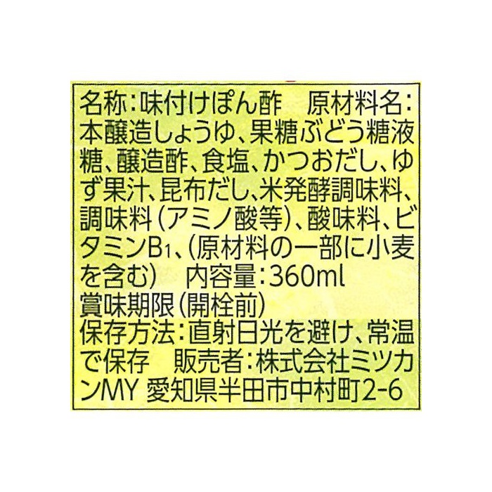 원본상품명: ミツカン 減?だしぽん酢 360ml