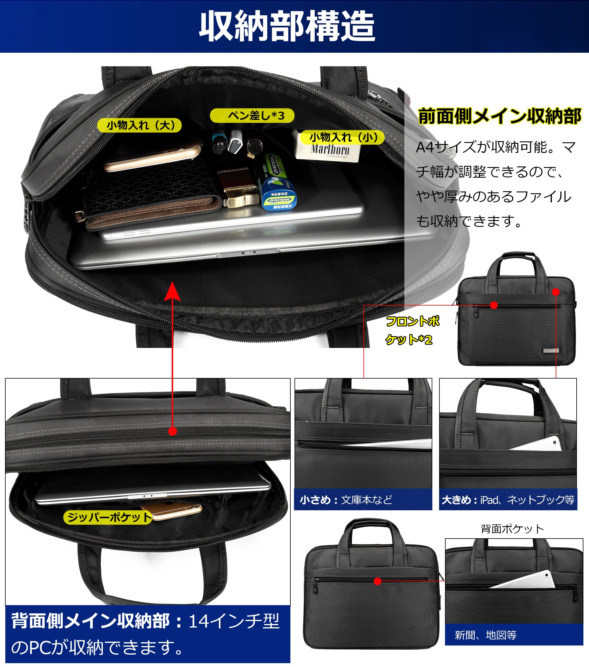 ◎ The front side main storage section adopts zip opening and closing, it is the size which can store A4 size such as documents and files.