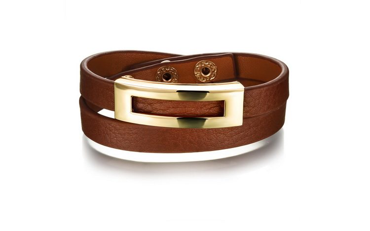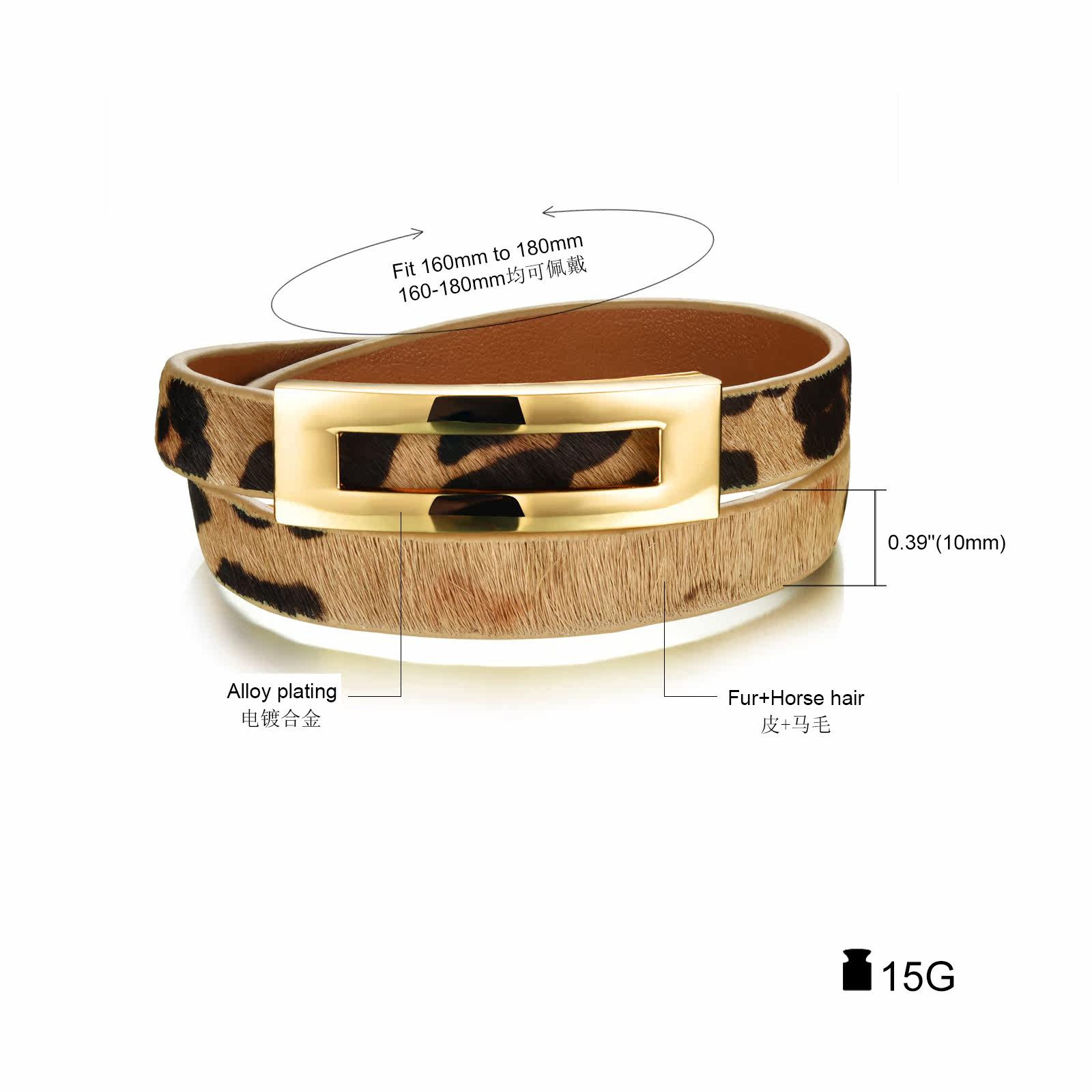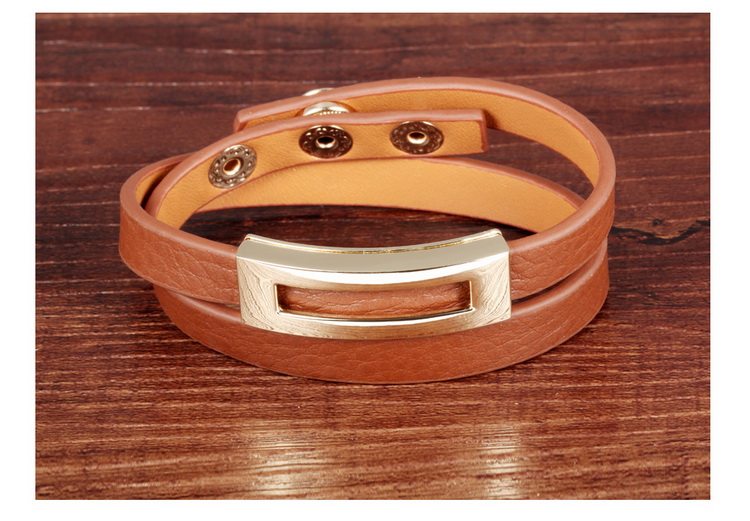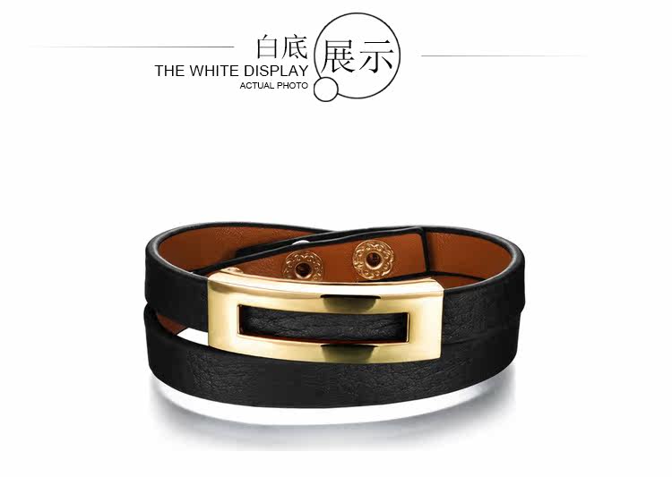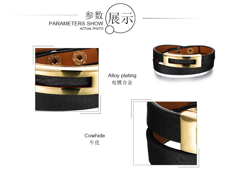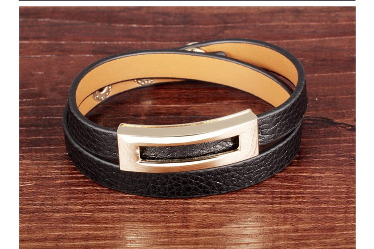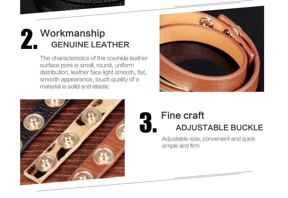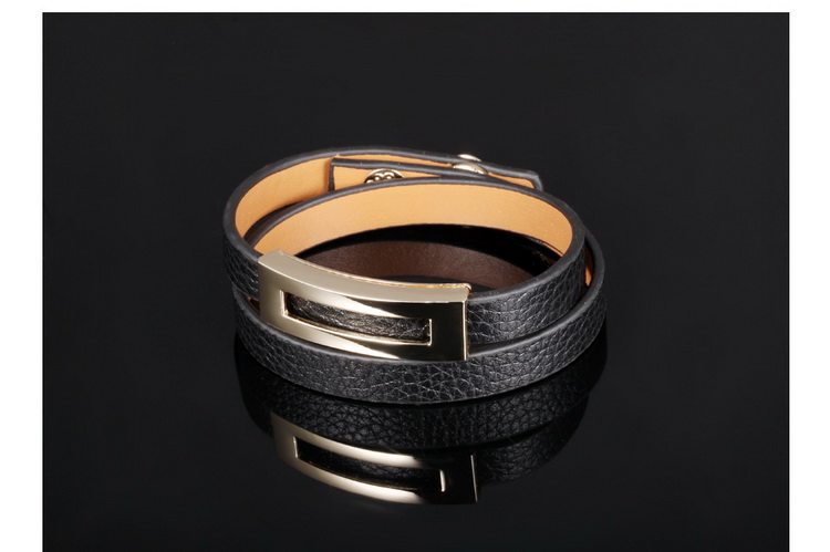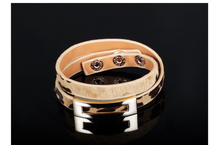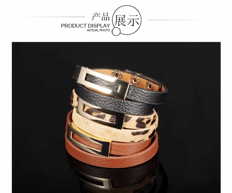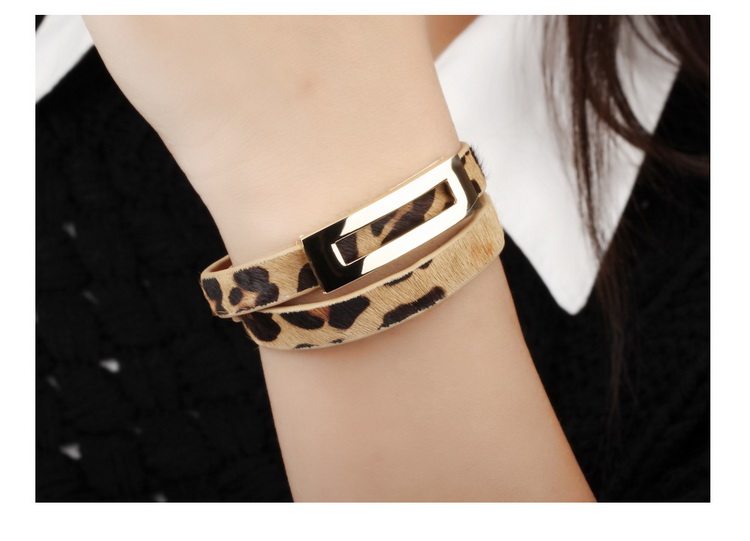 Leopard Print Black Leather Double Wrap Belt Buckle Bracelet for Women Banglesu0026nbsp;