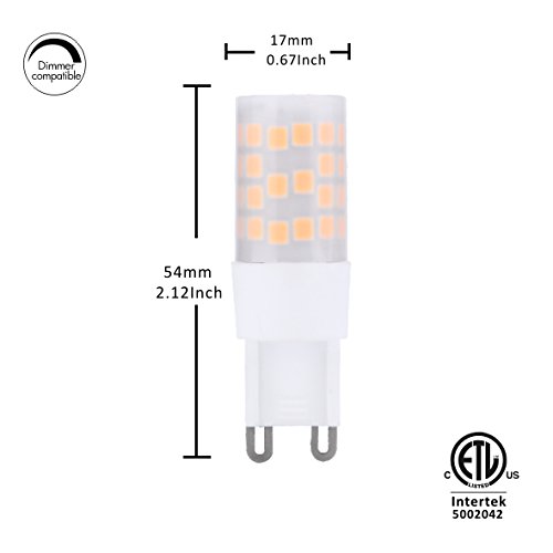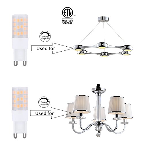 Saco Dimmable G9 LED Lights Bulbs, 45W halogen equivalent ,4.5W,warm white(2700K),120V, ETL listed, 360,For Ceiling Fan , Chandeliers(Pack of 6)
