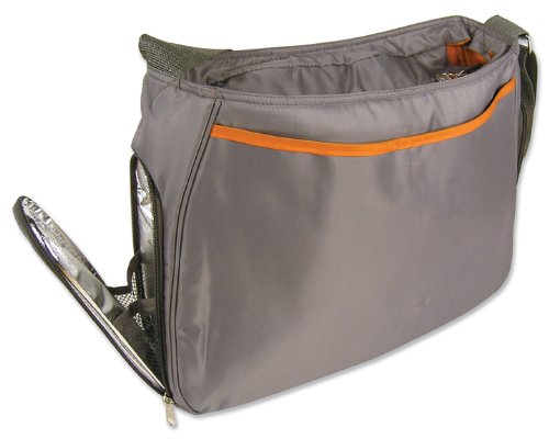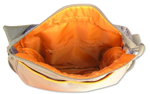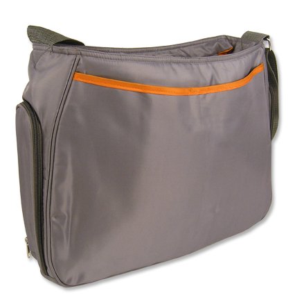 - Feature : HOBO STYLE DIAPER BAG - Gray Body/Webbing Strap and Shoulder Pad w/Orange lining; 16" x 14"; Strap: 45" x 2"; changing pad & messy bag included / body/lining/trim: nylon; gray webbing strap; 2 front/1 back outer pockets w/magnetic closures; 2 insulated bottle pockets; 2 interior pockets; top zipper closure / Spot clean only with damp cloth; Line dry; Do not bleach; Do not dry clean / Comes with any one of the dispalyed animal bath toy