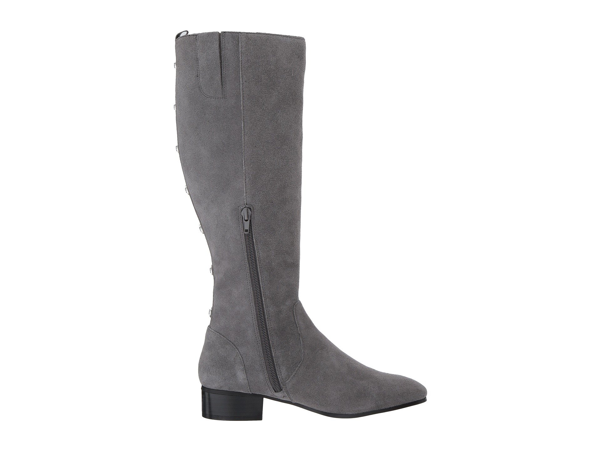 | Product Information SKU: #8969798We know you're just going to love the Nine West? Olwynee boot!Suede or leather upper. Pull-on design with a partial-zipper closure. Ribbon and button detail along the heel. Round toe. Textile lining.Lightly padded footbed.Block heel. Man-made outsole. Imported.Product measurements were taken using size 7.5, width M. Please note that measurements may vary by size.Weight of footwear is based on a single item, not a pair.Measurements: Heel Height: 1 in Weight: 1 lb 1 oz Circumference: 14 in Shaft: 15 1?4 in |