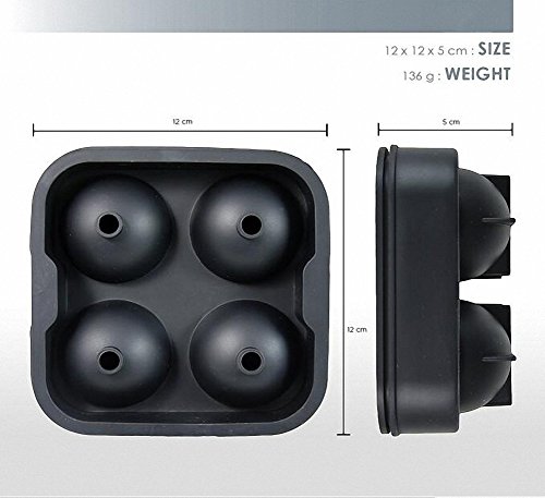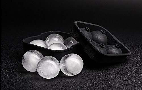 Ice Ball Maker Mold - Flexible Silicone Ice Tray - Molds 4 X 4.5cm Round Ice Ball Spheres - The Perfect Bar Accessory Gift(Black)