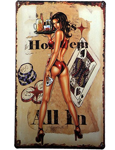 Poker Pin up Beer Girl Retro Vintage Tin Signs,12 x 8 inches
