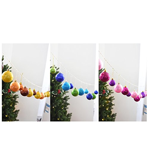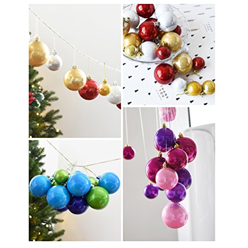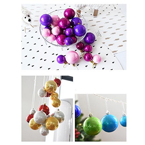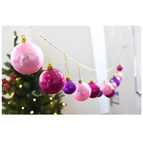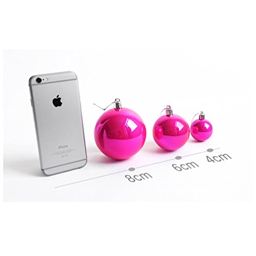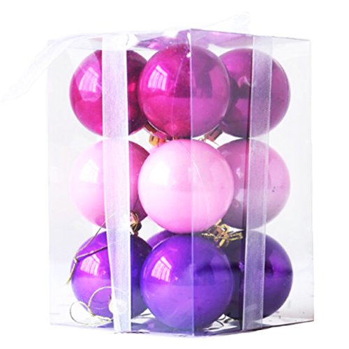 12ct Barrel Plating Multi Color Small Large Size New Year Christmas Xmas Tree Balls Set Ornaments 12pcs With Ropes (40mm/1.57", Pink Red Purple)