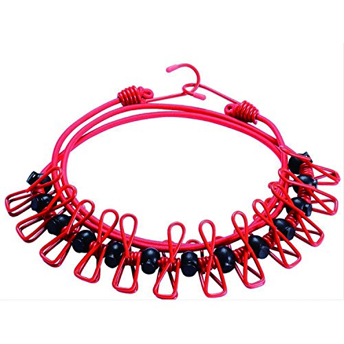 Y-luck Travel Retractable Clothesline Outdoor Windproof Laundry Rope Anti-Skid Clothespin Household Drying Racks Clothesline With 12pcs Hangers Clip (Red)
