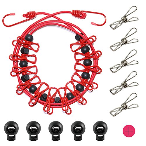 - Lightweight, portable. The rope is expandable/stretchable, can save a lot of space when not in use. And it only takes up very little space in your backpack, very easy to carry.Great for travel, camping, outdoorand indoor use. Can be drying a variety of clothing.