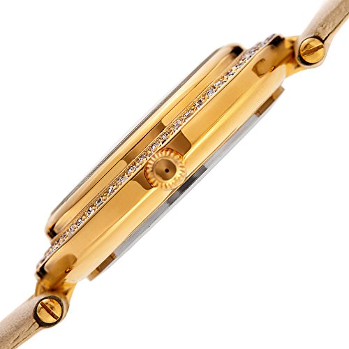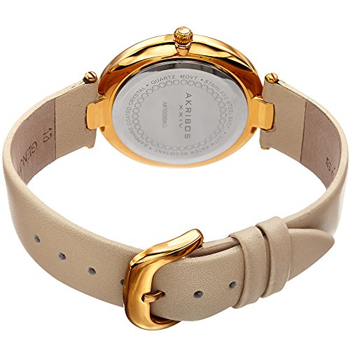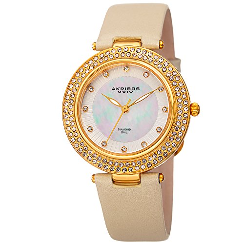 -. Title : Akribos XXIV Women's Quartz Diamond, Crystal, & Mother-of-Pearl Gold-Tone & Champagne Leather Strap Watch - AK1008YG