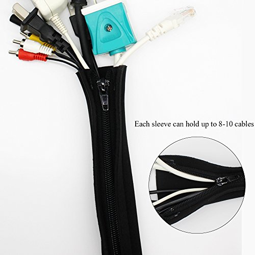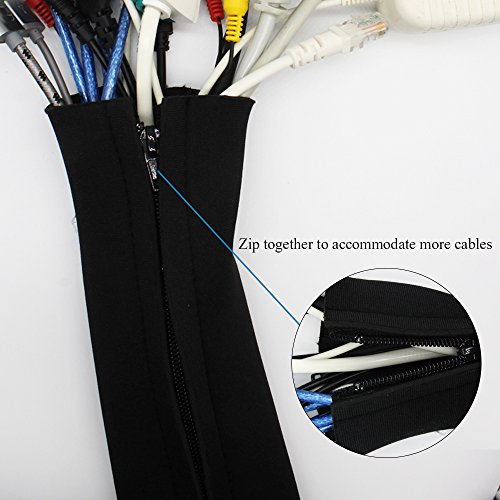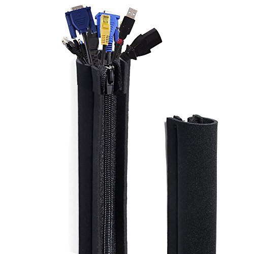 - Cable management sleeve ensures that the cables behind your TV or computer remain neat and tidy, without tearing while protecting cords from foot traffic & chewing pets.No more messy looking home or office and even gives you more space to work with.