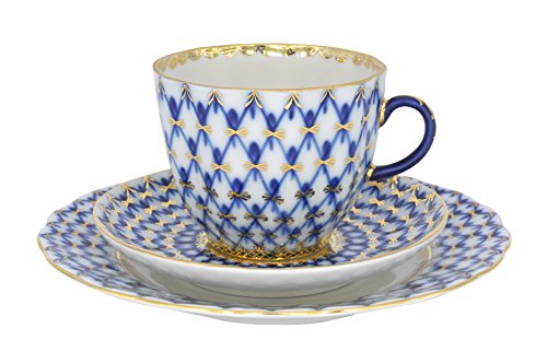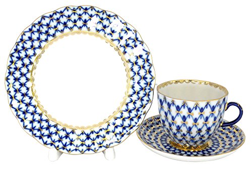 -. Brand : Lomonosov Russia -. Color : Cobalt Blue, 22 karat gold -. EAN : 0782358686227 -. Feature : The item is HAND PAINTED, hand wash is recommended. / The original Lomonosov factory logo is on the bottom of each piece. / Made in Russia by the Imperial Lomonosov Porcelain Factory. / Cup measures 2.4" H and 2.8 " D,capacity 4.73 fl. oz; saucer is 4.5" D; cake plate is 6" D / Shape: Tulip; Shape author - S. Yakovleva; Pattern author - A. Yatskevich -. IsAutographed : 0 -. Label : Lomonosov Russia -. Manufacturer : Lomonosov Russia -. MPN : 1937713469 -. PartNumber : 1937713469 -. ProductGroup : Kitchen -. ProductTypeName : KITCHEN -. Publisher : Lomonosov Russia -. Studio : Lomonosov Russia -. Title : Lomonosov Porcelain Cobalt Net Coffee Cup and Saucer 3pc. -. UPC : 782358686227