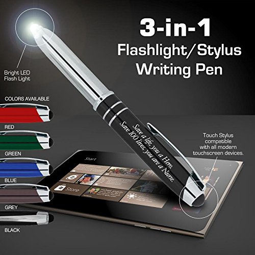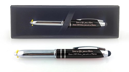 Nurse Gift Pen With Engraved Messaged “Save a Life, You are a Hero, Save 100 Lives You are a Nurse” - 3-In-1 Pen,Stylus,and Flashlight For the Nurses Notes Tablets and Phone - Black - By SyPen