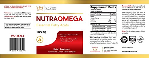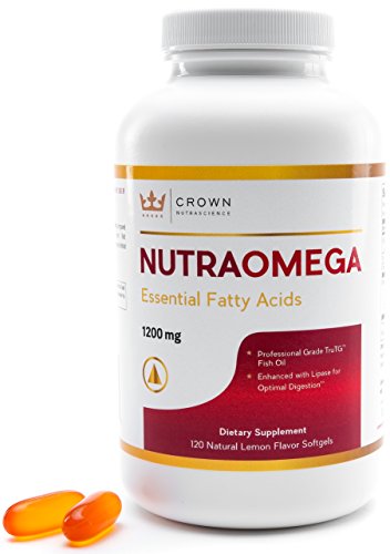 NutraOmega by Crown NutraScience - Omega-3 Triglyceride Fish Oils, 1200mg Essential Fatty Acids with Lipase, 120 Count, 2 Month Supply!