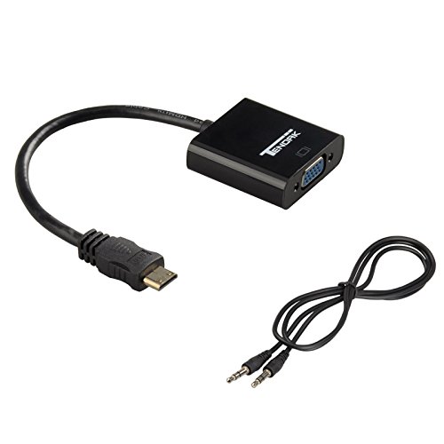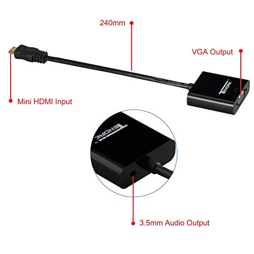 Tendak Mini HDMI to VGA converter cable is a portable digital-analog convertible adapter, defined through a Mini HDMI input HD sources, you can convert audio and video output for VGA + audio. It features a built-in active IC chip that improves compatibility and delivers sharp picture quality. Choose to "Mirror" your computer screen for a presentation on a projector or "Extend" your desktop to view more applications on a monitor.