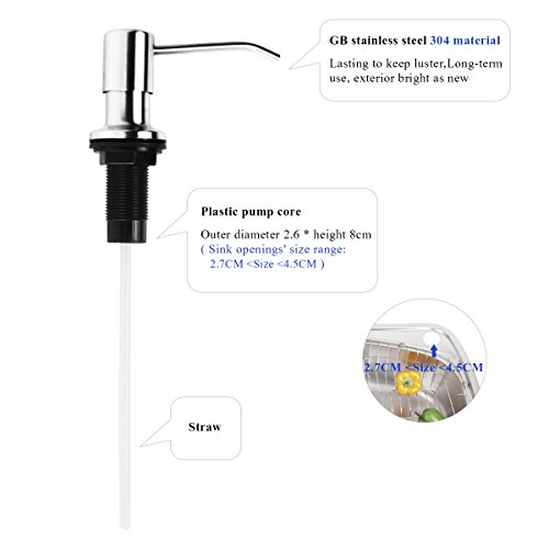 - ❤GREAT FOR KITCHEN AND BATHROOM: Adopt the built-in installation structure, keep a tidy countertop without occupy space. Also makes it easy to squirt hand soap, lotion or dish soap using one hand and the extended spout easily dispenses onto a sponge or directly into the sink.