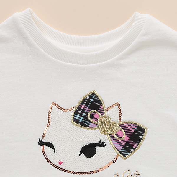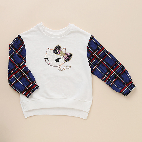 상품설명 발랄한 블루 컬러의 체크무늬가 배색된 화이트 맨투맨 티셔츠 입니다. 블루 체크무늬가 유니크하고 발랄한 느낌을 주며, 프랜치켓 고양이에 체크 리본으로 귀여운 느낌의 포인트를 주었습니다. 데님 아이템이나 레깅스, 스커트 모두 어울리는 활용성이 높은 데일리 아이템입니다.