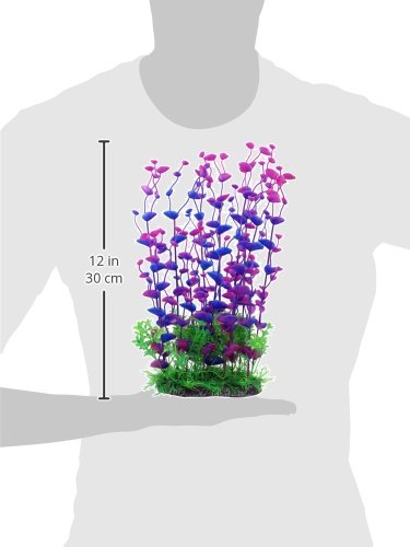 Jardin Aquarium Plastic Manmade Plant for Fish Tank, 14.2-Inch Height, Purple/Green