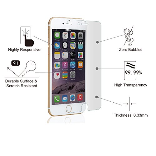 -. Feature : Specifically designed for your iPhone 6 Plus 5.5 device / Ultra-clear with 99.9% transparency to allow an optimal, natural viewing experience / Highly durable, and scratch resistant - surface hardness 9H / 0.33mm thickness is reliable and resiliant, and promises full compatibility with touchscreen sensitivity / Includes: 1x Glass Screen Protector, Micro-Fiber Cleaning Cloth, Squeeze Card and Installation Use Guide