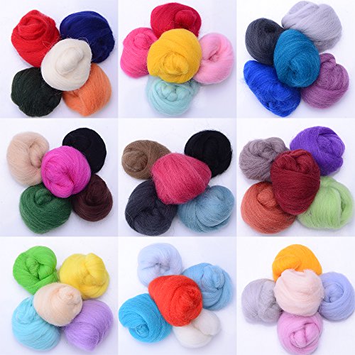 Zealor 45 Colors Needle Felting Wool, Wool Fibre Wool Yarn Roving for Needle Felting Hand Spinning DIY Craft Materials