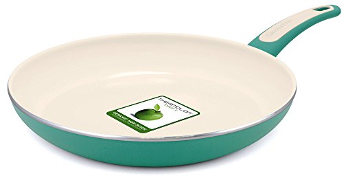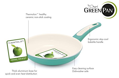 The GreenPan Focus range is designed for a trendy kitchen without compromise. The aluminum 8" Ceramic Non-Stick Open Frypan with a turquoise exterior body, combined with the cream Thermolon ceramic non-stick coating is a favorite amongst foodies and design addicts. But let's not judge the collection by its color, because the Focus range has a lot more in store. It is dishwasher safe and extra convenient thanks to the stay-cool Bakelite handle. Complete with a limited lifetime warranty for worry-free cooking. In short: a trendy and healthy companion in any kitchen!Feature