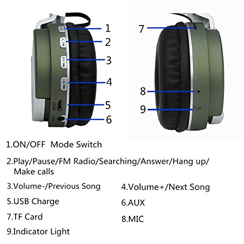 On Ear Wireless Bluetooth Stereo Headphones,Jeselry Foldable Wireless Stereo Headsets, Bluetooth Version 4.0,Powerful Bass Headphones with Detachable Audio Cable 3.5mm,TF ,FM,MIC-Green