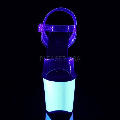 Product DescriptionRADIANT-708UV/C/NW features 7" (178mm) Heel, 3 1/4 (83mm) Platform Ankle Strap Sandal Featuring UV Blacklight Reactive Platform Bottom0