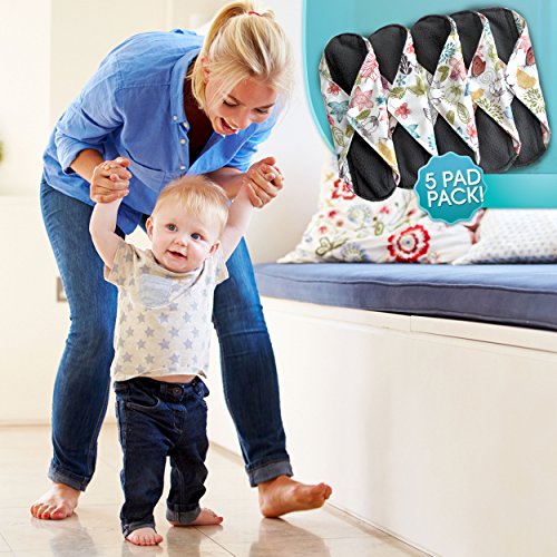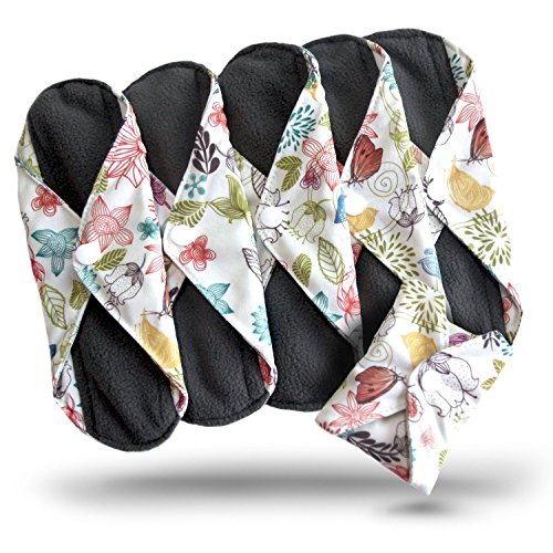 -. Feature : FEEL GOOD about saving money and reducing landfill waste (typically 22 tampons / sanitary pads are used per month!). Over a lifetime that is a HUGE saving by simply investing in reusable, washable cloth menstrual pads. / FEEL CONFIDENT knowing that the waterproof outer will protect you from any leaks and spills. Feel comfortable with the ultra soft, charcoal infused inner fabric layer against your skin. Heart Felt Reusable Sanitary Pads with charcoal absorbency layer work great as period panties too. / CHARCOAL is super-absorbent and a huge new trend in cloth diapers too. Not only great at soaking up liquid, smells are neutralized and the dark color is forgiving of stains. / PRETTY DESIGNS - Reusable menstrual pad outer is feminine and discrete. Fold over and snap into place. HEAVY flow size, XL and wider at the back for extra peace of mind. / ECO-FRIENDLY and a MUST for smart, sustainable women. Save 20% on your 2nd (5 Pack) when you order 2x (5 Packs) or more (details below). Ideal as washable incontinence pads or for period panties. High quality alternative to Mama Cloth, Charlie Banana, Sckoon and Fuzzibunz Menstrual Pads. Bamboo alternative to disposable sanitary napkins and tampons.