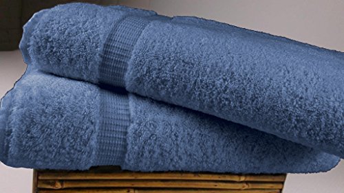 Turkish Luxury Hotel & Spa 30"x60" Bath Sheet Set of 2 Turkish Cotton - Organic, Eco-friendly (Bath Sheets, Blue)