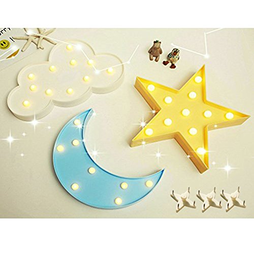 Decorative LED Crescent Moon Cloud and Star Night Lights Lamps Marquee Signs Letters for Baby Nursery Decorations Gifts for Children ( moon cloud and star )