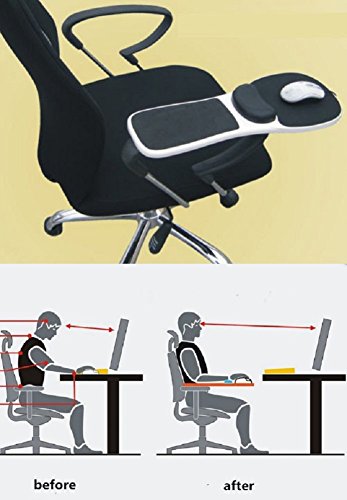 Perfect Arm Support While Working on Your Computer At Home or Work. Easy assembly, no tools necessary. For chair use only!!! Keep correct posture, avoid cervical vertebrae ache, mouse hand & nearsightedness.