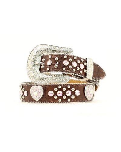 -. Title : Nocona Girls' Heart Concho Croc Print Leather Belt - N4425202